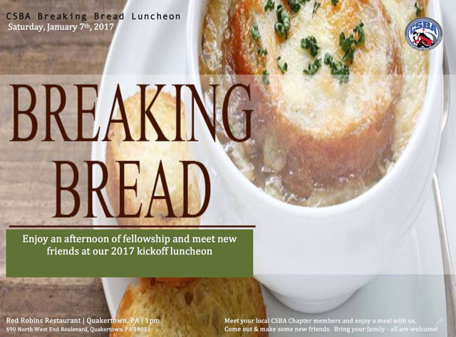 If you missed our January CSBA Breaking Bread Luncheon you will have another chance to come join our local chapter along with our friends & families as we break bread in fellowship and rejoice for the new riding season at our “Breaking Bread Luncheon” in February. In keeping with tradition, here’s your opportunity to meet new friends and learn more about the CSBA as an organization. Meet some of our ride leaders, learn more about our CSBA Day @ the Races venues, and most importantly – reconnect and make some new friends that share your passion of riding.